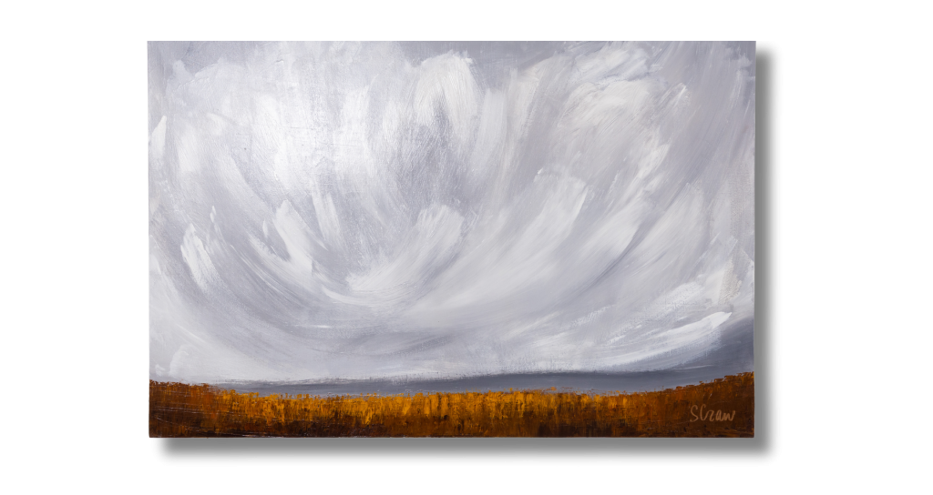 Sarah Craw is a self-taught, multi-disciplinary artist in Omaha NE.  She currently practices abstract expressionism with mixed media, indulging in a state of play and finding ways to repurpose found materials.  Craw also practices minimalist illustration using her typewriter, merging word play with negative space.  This practice is meant to produce more quiet works that allow the viewer a space to contemplate.   Craw states, “I am grateful to have talent and passion for the same thing.  I feel humbled to have been chosen as a vessel for creativity.  I choose to make time and space in my life for art, and I hope I can inspire others in doing so.  My practice is a continuous exploration of myself and the world around me.”